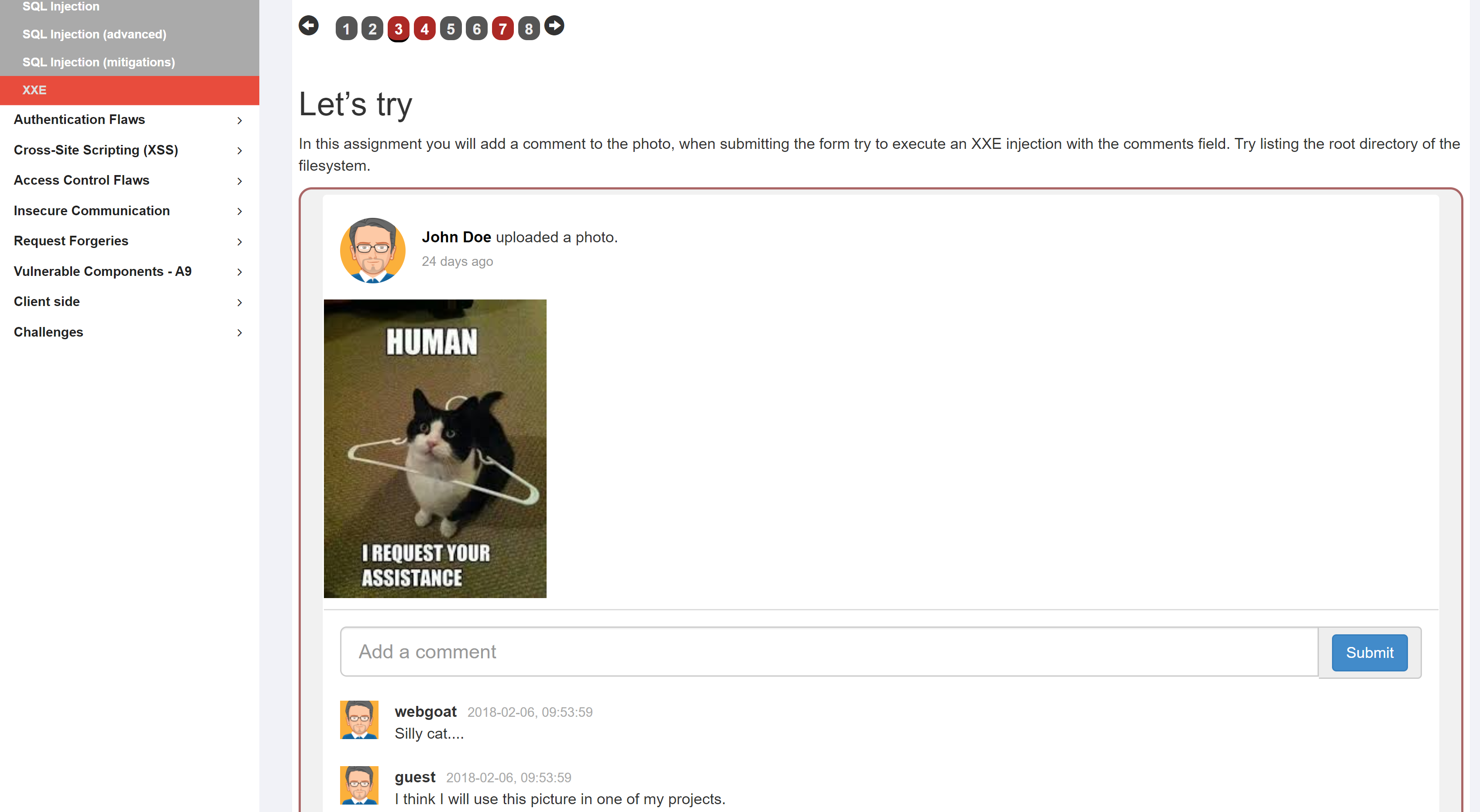 Teaching is now a first class citizen of WebGoat, we explain explain the vulnerability. Instead of 'just hacking' we now focus on explaining from the beginning what for example a SQL injection is.