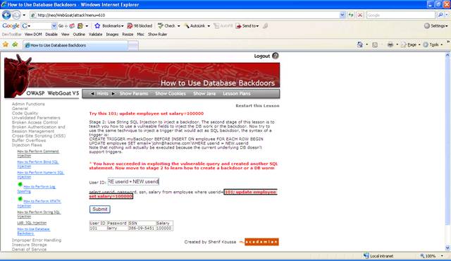 divide by zero, inaccurate discount and totals, reflection of user input git-svn-id: http://webgoat.googlecode.com/svn/trunk/webgoat@273 4033779f-a91e-0410-96ef-6bf7bf53c507